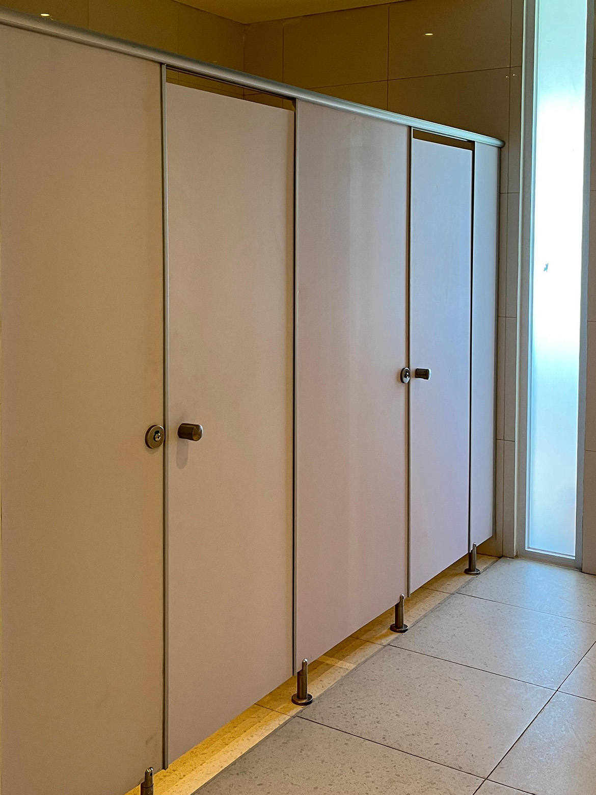 Solusi praktis untuk kebutuhan toilet partisi phenolic board di ruang publik seperti bangunan perkantoran, mal, sekolah, dan tempat umum lainnya. Menggunakan material partisi phenolic board 12mm.